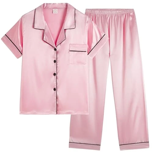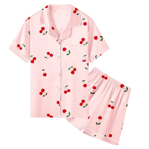 ♥【Trendy and Elegant Design】: Our solid pajama set collection brings you a variety of colors you can choose from. The short pajamas set features simple color matching design, combined with button up and notched collar, together giving a neat and trendy look to it. And the adjustable and elastic waist drawstring provides you a customized fit to your liking.